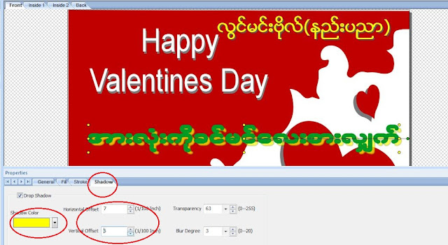 အေပၚပံုကေတာ့ စာလံုးအေရာင္ေျပာင္းျပထားတာ ျဖစ္ျပီး.. ေအာက္ပံုကေတာ့ စာလံုးရဲ႕အရိပ္ကို ထည့္ျပထားတားပါ..။ အားလံုးပဲ ပံုၾကည့္ျပီး အဆင္ေျပလိမ့္မယ္လို႔ ထင္ပါတယ္..။